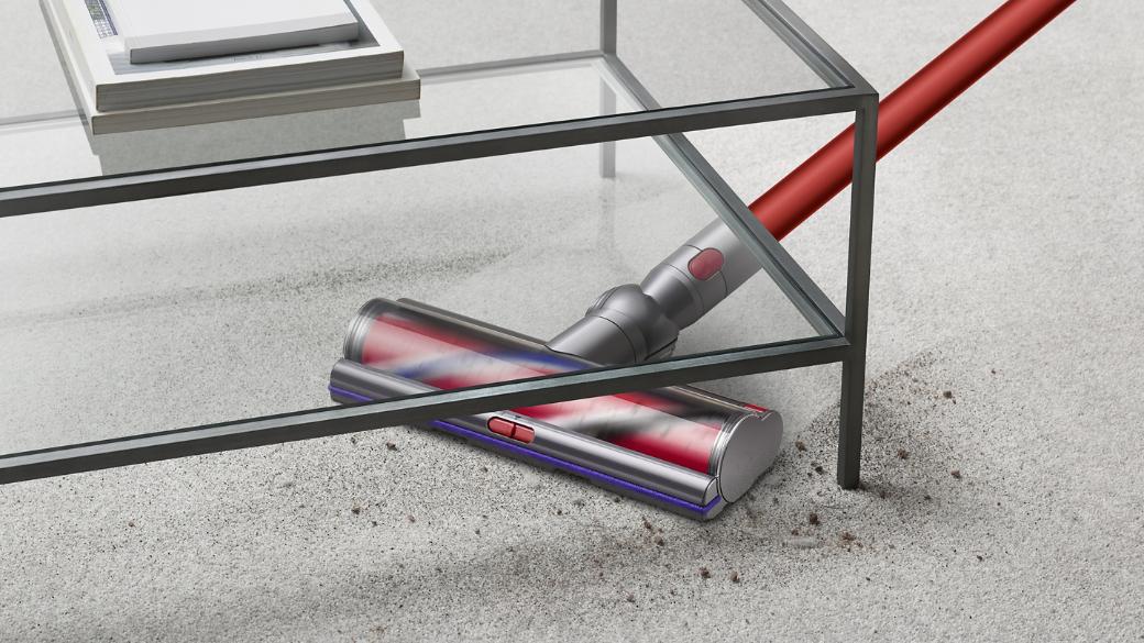An integrated digital motor spins the 25% wider brush bar2 up to 60 times a second. It drives stiff nylon bristles deep into carpet to remove dirt, while carbon fibre filaments capture fine dust on hard floors.