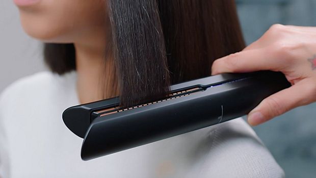 The Dyson Corrale™ straightener may seem heavier when you first pick it up. That’s because it is packed with advanced 4-cell lithium-ion battery technology, giving you maximum styling time and the thermal performance of a corded straightener. The battery’s placement is engineered to help provide balance in the hand. This helps give you maximum control while styling – without the cord.