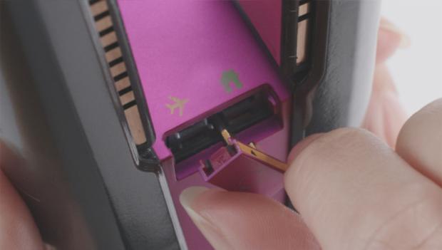 1. Before packing your straightener—remove, rotate and replace the Flight-ready tag with the black arrow in the Flight-ready position.