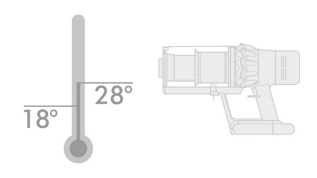 Heat sources, such as radiators, can damage the battery. We recommend that you store your vacuum at temperatures between 18°C–28°C, away from direct sunlight and out of boiler cupboards. -